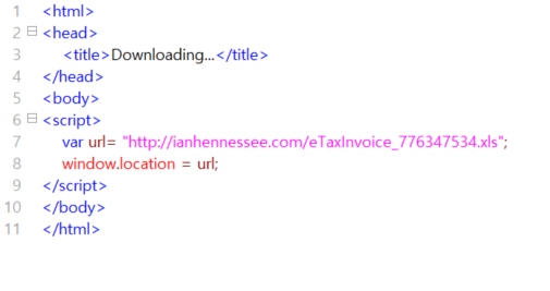 html 파일에는 URL에 연결된 엑셀파일을 다운로드하여 매크로를 통해 PC를 감염시키게 됩니다.
