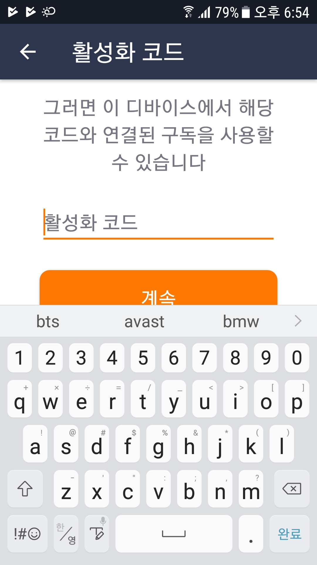 Avast 안드로이드용 모바일 백신 라이선스 등록