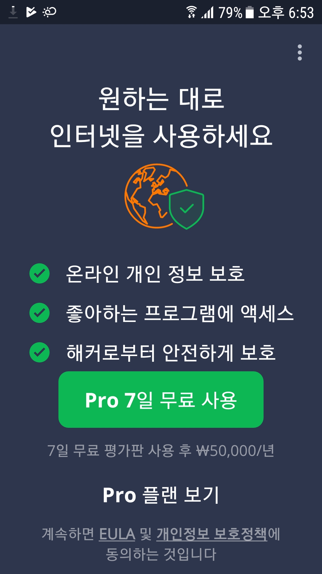 어베스트 시큐어라인 VPN 멀티플랫폼이나 Avast 모바일 얼티미트 구매시 어베스트 시큐어라인 VPN을 사용할 수 있습니다. 활성화코드 등록은 우측 상단의 점3개 메뉴을 클릭하여 "이미 구입하셨습니까?"를 클릭하거나 Pro 플랜 보기 메뉴를 눌러 "이미 구입한 경우" 메뉴에서 바우처 사용하기를 클릭하여 활성화코드를 등록하면 됩니다.