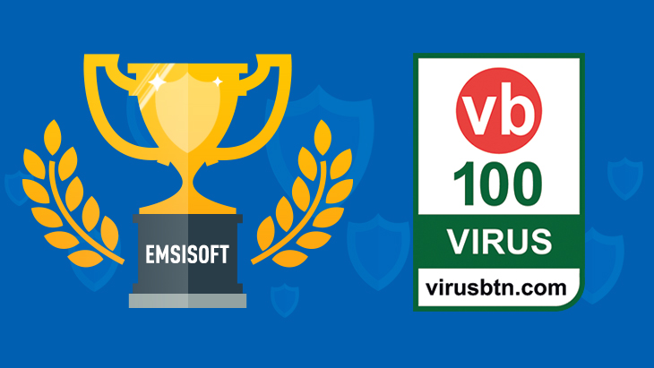 엠시소프트 안티멀웨어는 이 테스트를 통과하였고 1,046개 악성코드 샘플에 대해 오탐 없이 모두 탐지해 내었습니다. 이로 인해 연속 VB100을 수상하였습니다.