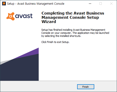 Visual C++과 PostgreSQL이 설치가 완료되고, Avast 설치형 중앙관리 콘솔도 설치가 정상적으로 종료되면 [Finish] 버튼을 눌러 설치를 완료합니다.