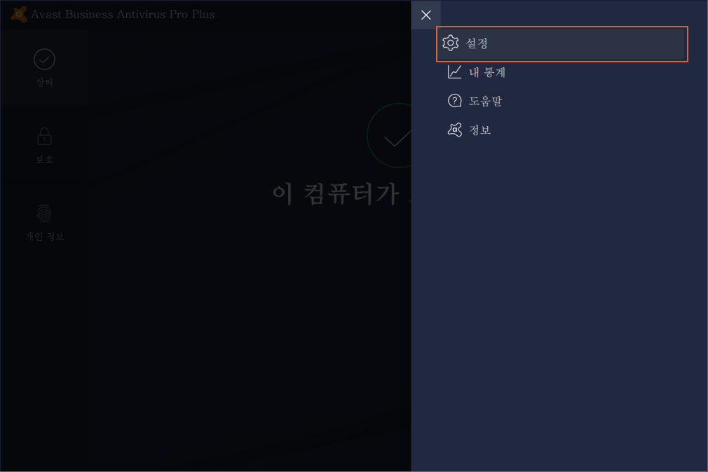 - 어베스트 백신 실행 후 우측 상단의 메뉴 클릭