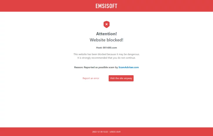 EMSISOFT 사용자들이 스캠으로 부터 보호 받기 위해 알려진 악의적인 웹사이트의 접근을 차단하기 위해 이들 스캠 웹사이트 목록을 업데이트하고 사용자가 이들 사이트에 접속할 때 접속을 경고하고 차단해 줍니다.
