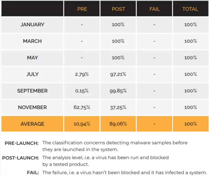 그런 다음 바이러스 백신 제품은 AVLab 허니팟 네트워크에서 캡처한 수천 개의 악성 프로그램 샘플과 기타 공용 악성 프로그램 피드에 노출됩니다. 연구자들은 결과를 분석하여 보안 제품이 악성코드를 막을 수 있는지 뿐만 아니라 감염 체인에 언제 개입할지(발사 전 또는 발사 후)를 결정합니다.