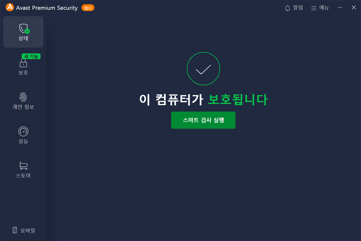 이 테마는 AVAST 베타에서 사용하실 수 있으며 일부 PC에서 일부 화면에 테마가 적용되지 않을 수 있습니다.