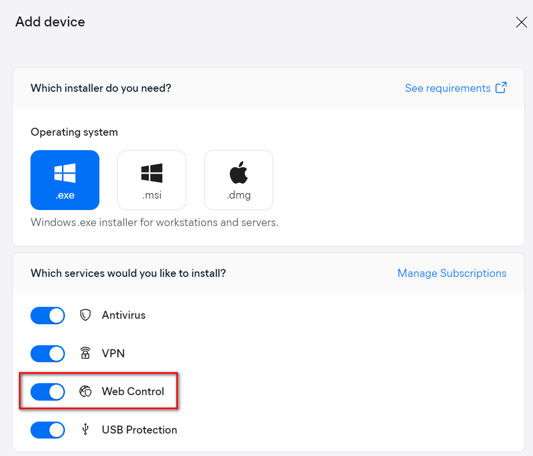- 실제 사이트: 웹 컨트롤은 웹 필터링 기능을 제공하고 사용자가 인증된 도메인으로 연결되도록 하기 위해 실제 사이트가 필요합니다. Real Site의 독점 DNS로 인해 내부 도메인에 대한 액세스가 차단될 수 있습니다. 보호된 장치에서 Real Site를 활성화하는 것이 좋지만 웹 컨트롤이 독립적으로 작동할 수 있는 솔루션을 개발 중이며 앞으로 몇 달 내에 출시될 예정입니다. 내부 DNS를 활용하지 않는 경우 이 알림을 무시해도 됩니다. Real Site 없이 웹 컨트롤을 실행할 가능성에 대한 귀하의 의견을 환영합니다 .