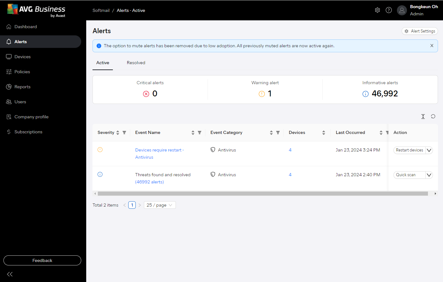 - AVG 비즈니스 클라우드 콘솔 중앙관리 : https://cloudconsole.avg.com/ 또는