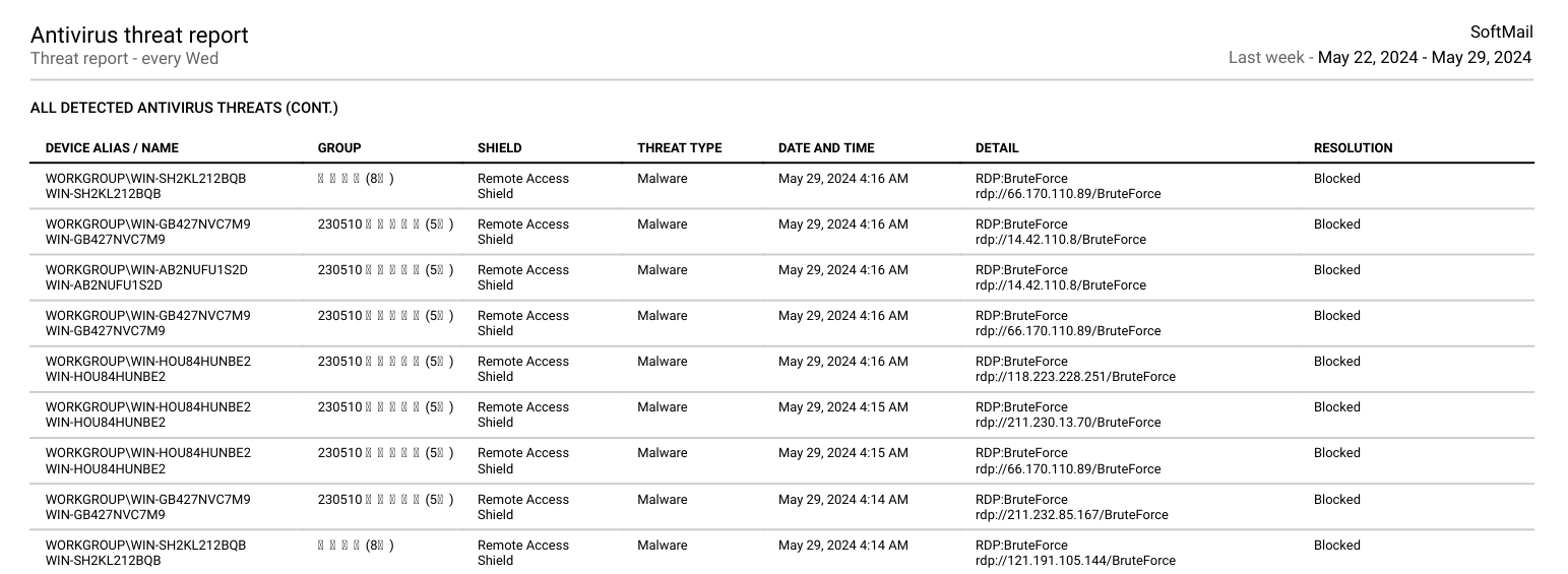 당사에서 운영하는 윈도우 서버에 대한 AVAST의 실시간 감지 중 RDP BruteForce 로그인 공격시도가 하루 기기당 206회 시도가 감지되어 차단되고 있는 것이 확인되었습니다.