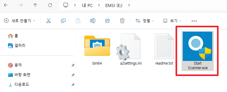 생성이 완료되면 USB 백신 매체가 완료되어 실행상태가 되며 USB 백신을 최신 상태로 업데이트 진행합니다. 탐색기에서 "start scanner.exe"를 실행합니다.