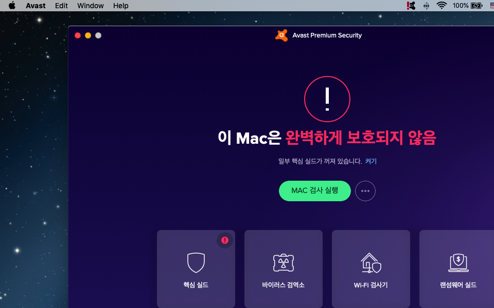 1) 응용 프로그램 Avast 백신을 더블클릭하여 어플리케이션을 실행합니다.